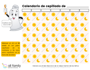 Brushing Calendar: Encourage brushing twice daily with a printable calendar to help your child celebrate their achievement. Bonus idea: Give your child a meaningful reward after a month of consistent good brushing habits.