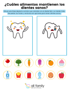 Happy Teeth Matching: Teach your children about how to make food choices for healthy teeth with a printable matching game. Limiting drinks and food with added sugars gives your child the best possible start to good oral health.